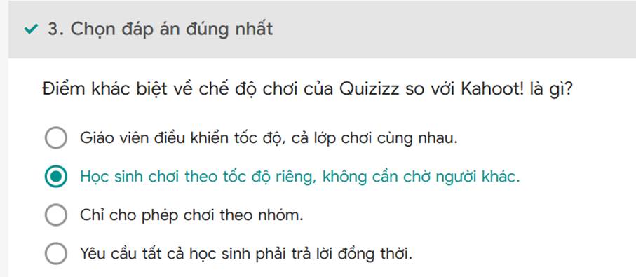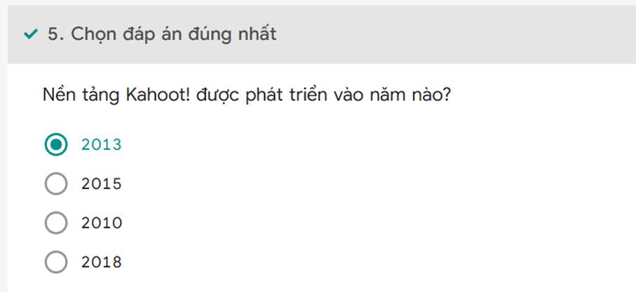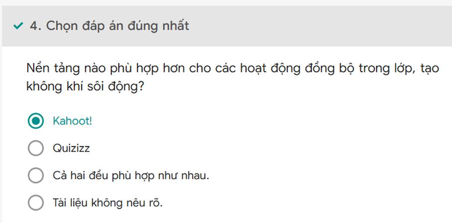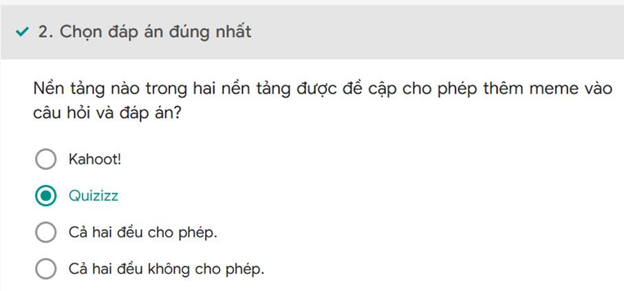 Bài tập trắc nghiệm 2 - Ứng dụng Kahoot!, Quizizz, Gamma trong giảng dạy