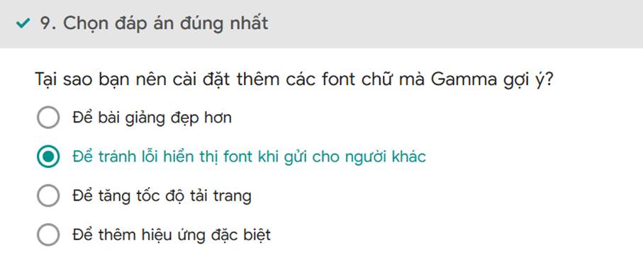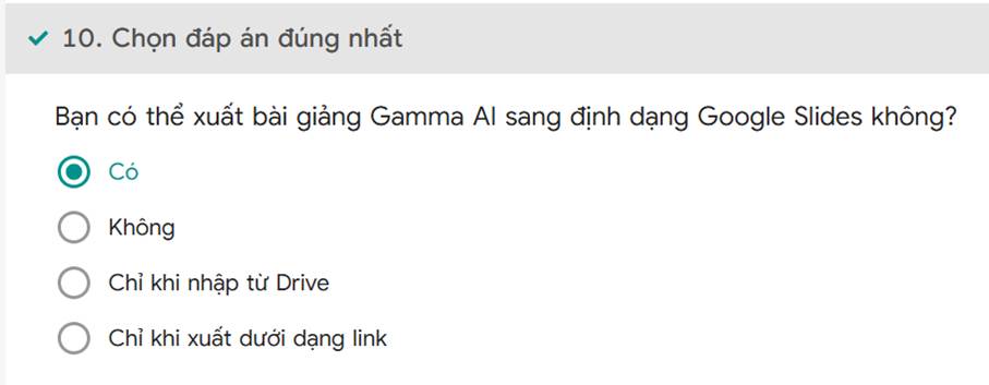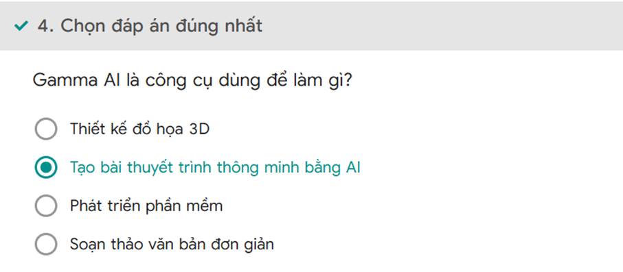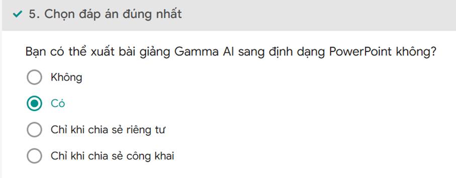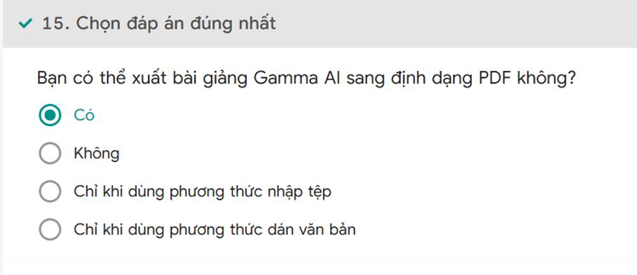 Bài tập trắc nghiệm 2 - Ứng dụng Kahoot!, Quizizz, Gamma trong giảng dạy